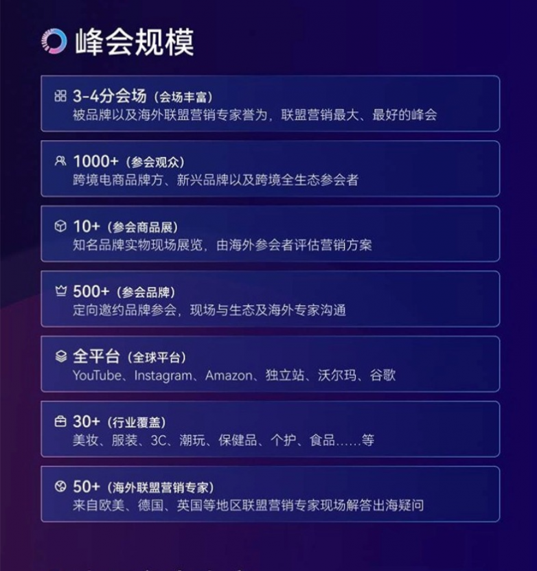 PartnerBoost系列峰会,被众多品牌及海外联盟营销专家公认为“联盟营销最大、最好的峰会”,累计曝光超3000万+。往届参会品牌覆盖3C、服装、美妆、家居、健康等出海核心赛道。