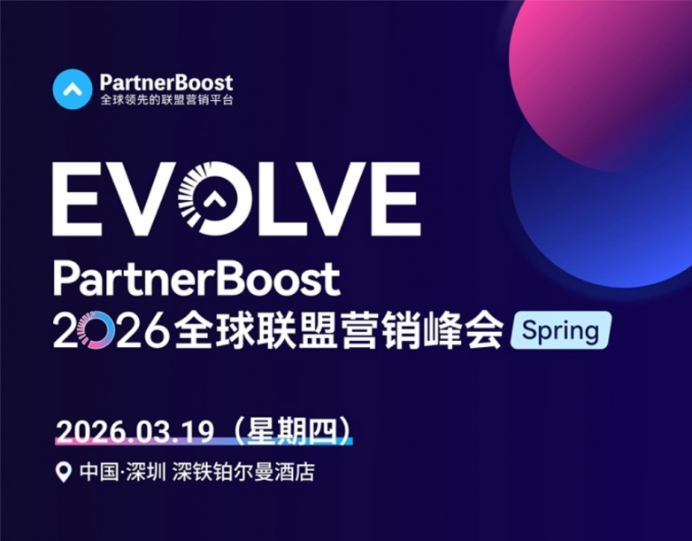 2026年3月19日,深圳,PartnerBoost EVOLVE 2026全球联盟营销春季峰会将以“EVOLVE”为主题,汇聚亚马逊平台与CNET、Slickdeals等媒体巨头,携手50+海外联盟专家,与千位出海决策者共聚一堂。这不仅是年度规格极高的行业盛会,更是中国品牌近距离对话全球增长资源的关键一站。