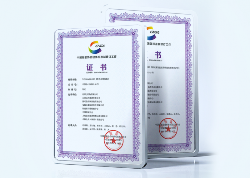 一个典型案例是“持久白免烫衬衫”。依托自主研发的双项持久白专利技术,这款衬衫解决了白衬衫易黄、难打理的用户痛点,并获得世界纪录认证。同样,升级至4.0版本的拒水羽绒,部分产品采用eVent®环保功能性面料。2025年,利郎还牵头制定拒水羽绒两项团体标准,首次明确了"抗湿冷性能”“拒水羽绒”等核心概念,为行业质量提升和专业化发展提供重要依据,推动了服装产业的绿色升级。企业坚持以技术创新赋能绿色产品升级,不断积累自主知识产权。