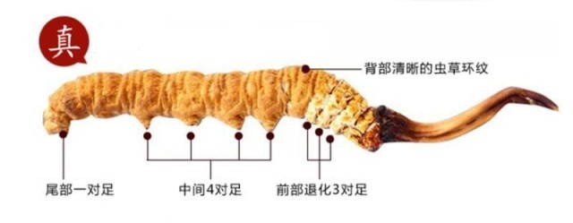 正所谓“赏味要趁鲜”,每年四月中旬至六月末的采挖期是选购虫草的最佳时机,一般消费者在鉴别挑选上如何不踩雷是值得注意的事情。据《本草从新》中记载冬虫夏草为“冬在土中,身活如老蚕,有毛能动,至夏则毛出之,连身俱化为草”,它独特的外形让人印象深刻。虫草由头部的真菌子座与虫体组成,细长圆柱形的子座呈深棕色至棕褐色伴有细纵皱纹,形体似蚕的深黄色至黄棕色虫体有明显的粗糙环纹,全身有足8对其中中部4对较显眼,整体虫肥草短,断面类白色略黄,充实内里有“V”形的消化腺痕迹。上手摸会有清脆的干草感,来回揉搓不会掉色,手上也不会粘有除泥沙、草屑外的其他杂质。