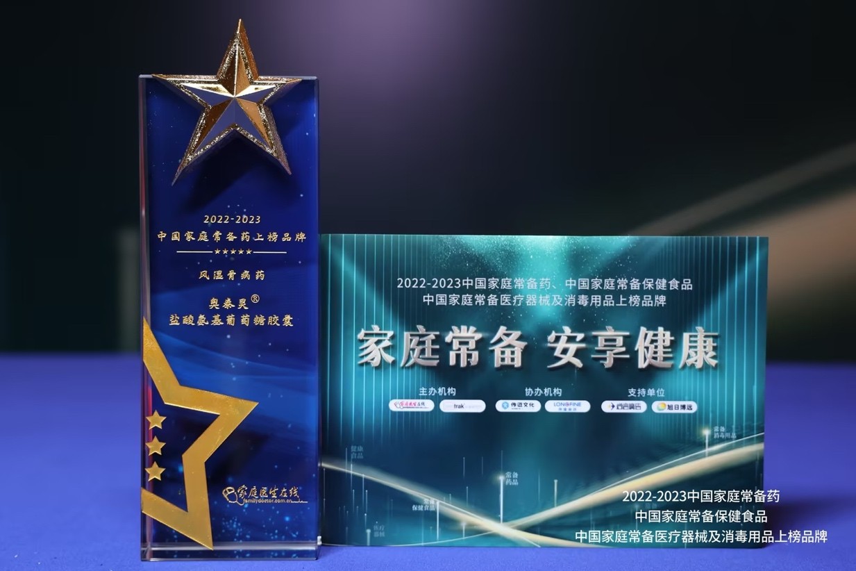 广州,12月4日 — 由家庭医生在线与新生代市场监测机构共同主办的2022-2023年中国家庭常备药品牌颁奖典礼在广州举行。香港澳美制药骄人地宣布,旗下四款药品成功跻身近139个全球品牌之列,包括奥泰灵®盐酸氨基葡萄糖胶囊、奥肯能®复方氨酚溴敏胶囊、奥络®夫西地酸乳膏和澳能®卤米松乳膏,成为2022-2023年中国家庭常备药品牌的耀眼之选。值得一提的是,澳美制药的明星产品之一,奥泰灵®,连续五年荣登中国家庭常备药品牌榜单,备受关注。