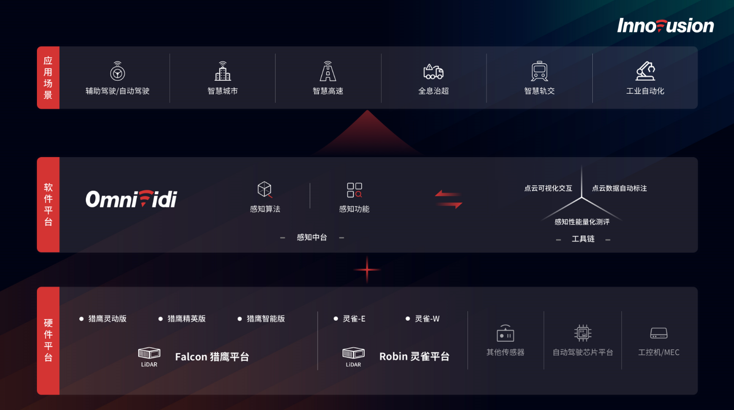 基于OmniVidi软件平台,Innovusion已分别对应辅助驾驶/自动驾驶、城市智慧交通管理、智能高速路建设、全息数字治超、轨道交通安防、工业自动化建设等不同应用场景推出感知软件,助力智能驾驶从基础环境感知到环境认知的能力提升,打造更高效,更安全的智慧交通环境,满足客户更可靠稳定、更友好简便的需求。